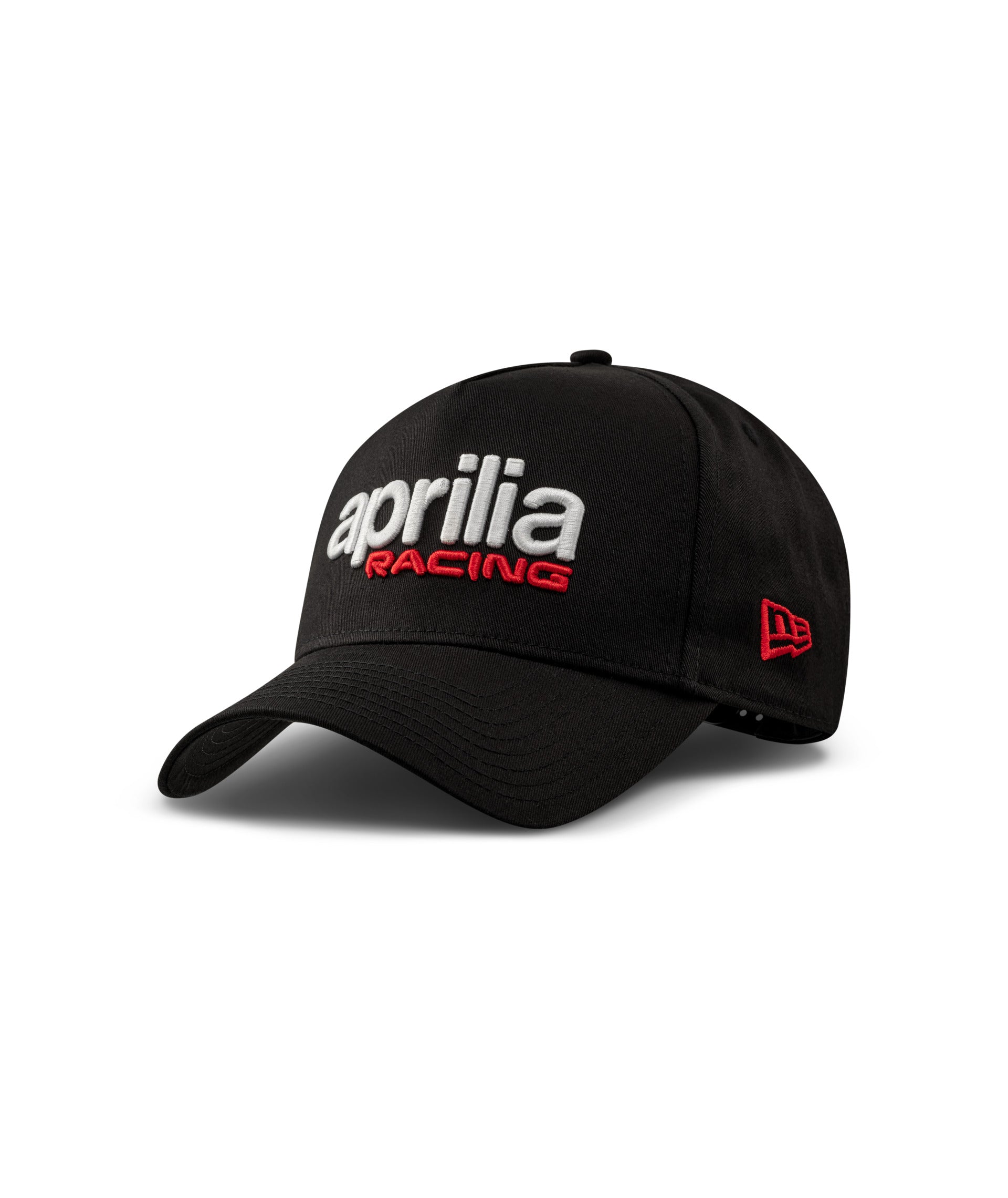 Featuring front panel with a bold 3D Aprilia Racing logo embroidery. 'New Era' logo embroidered in red on the side and snap closure complete this versatile accessory.